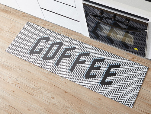 风格多样的设计,用简单的英文字母,让地面看起来简单又有艺术感。像是来到了网红饮品店,细小的蜂窝格子,让文字更加立体可感。细长的造型,可以长短搭配起来,铺满料理台边缘的地面,为厨房的安全加分。