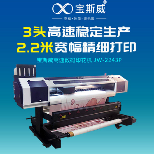 JW-2243P数码印花机:3个爱普生4720喷头,打印速度120㎡/h;