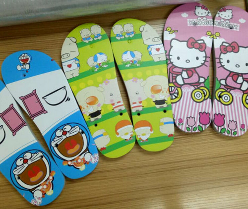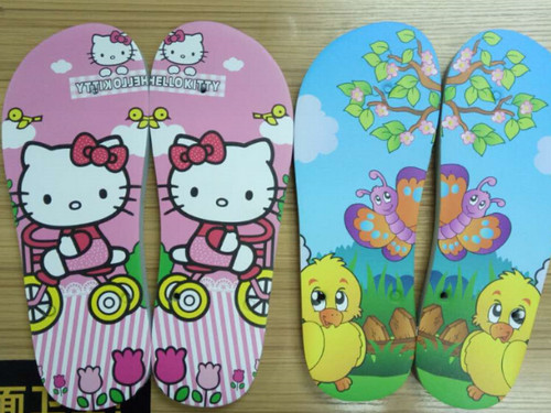 拖鞋UV打印工艺采用UV环保墨水直接在拖鞋上定制图案,没有颜色种类多少限制,无需制版、套色、对位。现在很多拖鞋厂家都在拖鞋的表面印上卡通人物,让一对普通的拖鞋瞬间变成不一样独特的潮流款式,让拖鞋不再是纯色简约的款式。另外还可以根据客户的需求还能打印各种个性图案、花样百出的款式,只要你能想到的图案都可以打印出来。