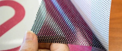 单孔透别名:透视贴.网孔贴. 主要材料为PVC材质.黑色胶底,单透膜孔径与孔距完全符合黄金分割法,达到透光率与画面表现率的最佳结合点。保证了最佳的视觉效果和透光率。